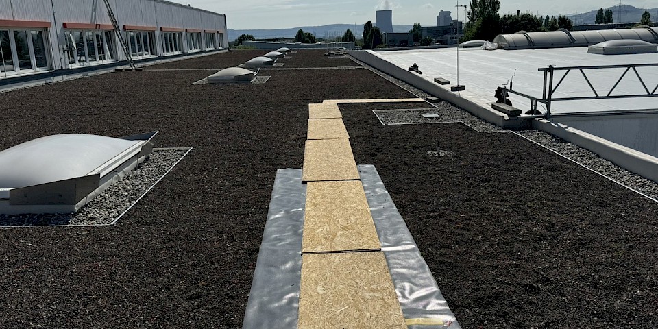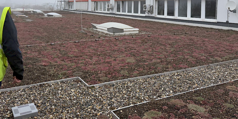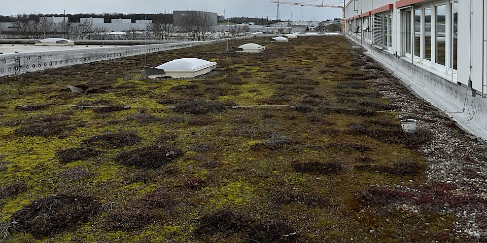 Die einzelnen Dachflächen wurden abschnittsweise energetisch saniert, teilweise mit einer extensiven Dachbegrünung oder einer FPO-Dachbahn als Oberlage.