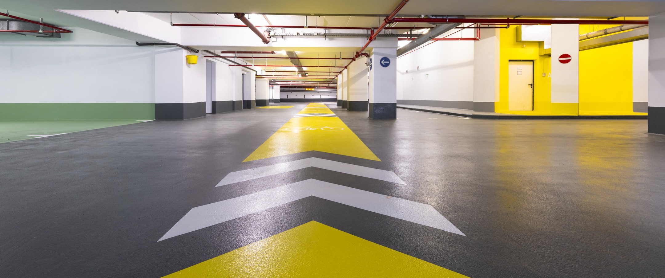 Nach Rückbau des alten Fahrbahnbelages und einer Betoninstandsetzung wurden die Bodenflächen beider Geschossebenen vollständig mit einen neuen PCC-Estrich und einer Polyurea-Spitzabdichtung versehen. Ebenfalls fand eine Sanierung der Außenrampen sowie sämtlicher Wand- und Deckenflächen statt.